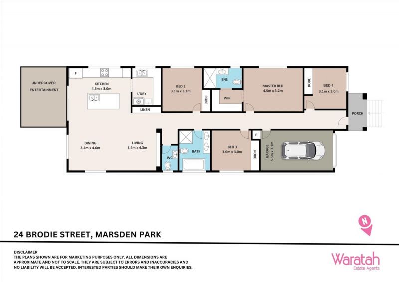 The spacious master suite boasts a walk-in wardrobe and a private ensuite, while the remaining three generously sized bedrooms each come equipped with built-in wardrobes, ensuring ample storage for the whole family.