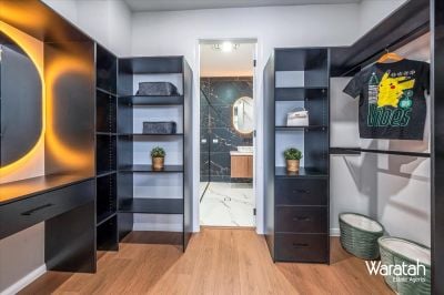 - The master suite is complete with a luxurious walk-in wardrobe with LED mirror dressing table, its own private ensuite, built-in robe/TV space, and a balcony