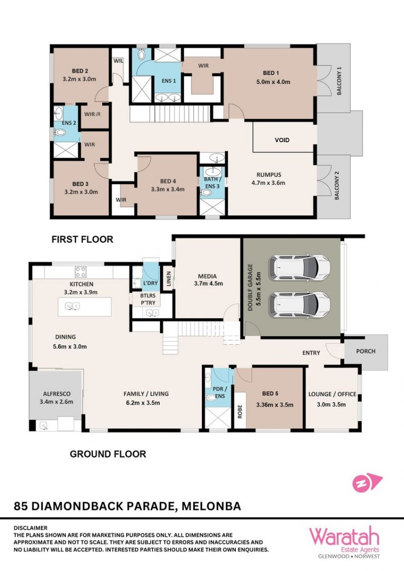 Upstairs, the master suite impresses with a walk-in robe, private balcony, and luxurious ensuite, while another master suite with walk-in-robe and ensuite and 2 additional bedrooms and a rumpus retreat offer comfort for the whole family.